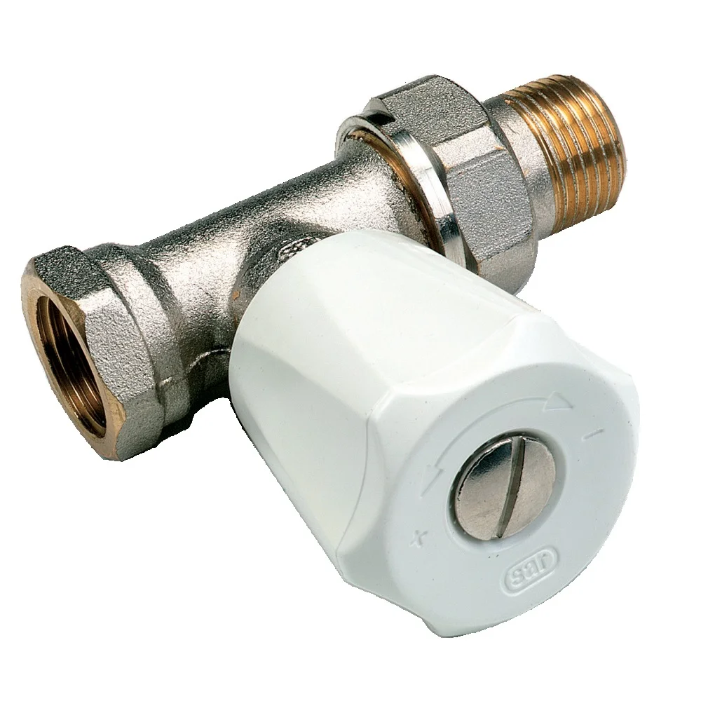 Robinet manuel thermostatisable équerre à visser Euro-SAR, finition nickelée.Thermostatisable sans vidange de l'installation (grâce à l'outil 5821).Adaptable sur tout type de radiateur.